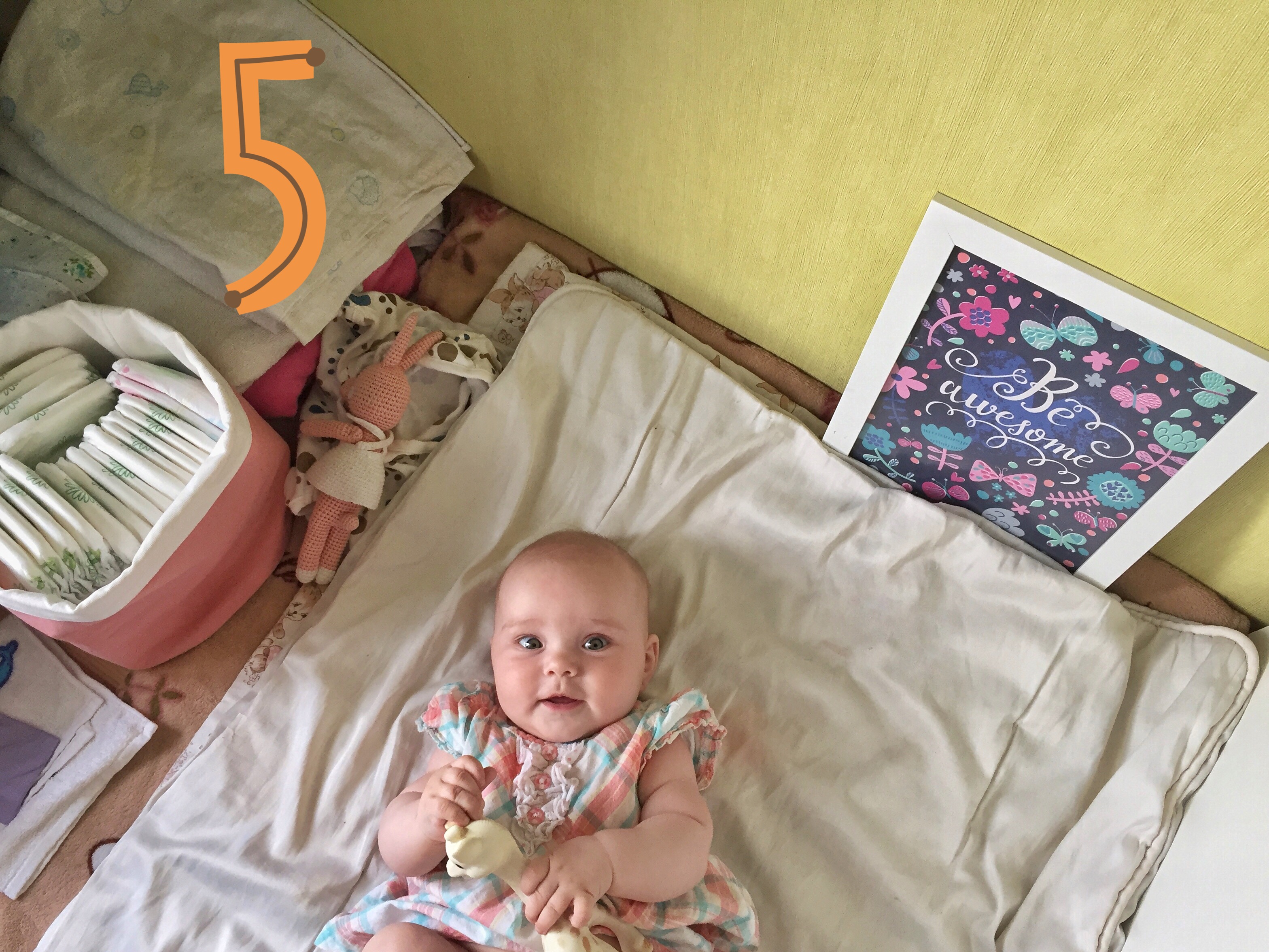 — Перешла на следующий размер памперсов и бодиков: 4-8 кг и 62